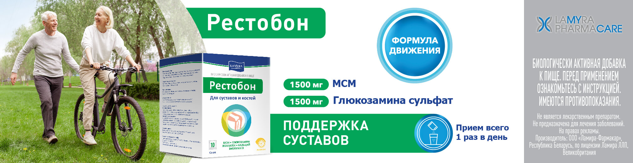Следовать этим советам — основа здоровья опорно-двигательного аппарата. Но осенью, когда нагрузки высоки, а солнца и витамина D становится меньше, суставам требуется адресная и концентрированная помощь. Получить все необходимые нутриенты только из пищи бывает крайне сложно. Именно здесь на помощь приходят современные хондропротекторы, такие как «Рестобон».